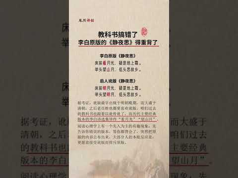 中学课本也跟着搞错了:你背诵的李白《静夜思》已经不是原版了(2022年6月12日 - 胤然诗创文话短视频第109期)#shorts #胤然诗创 ... 获取链接 Facebook X Pinterest 电子邮件 其他应用 六月 12, 2022 获取链接 Facebook X Pinterest 电子邮件 其他应用 评论